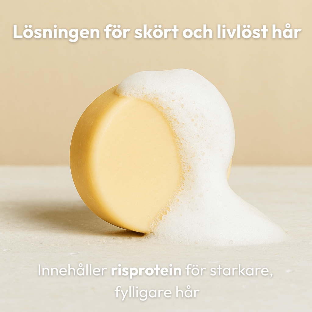 Én bar = op til 3 flasker. Mindre plast. Mere hårpleje.