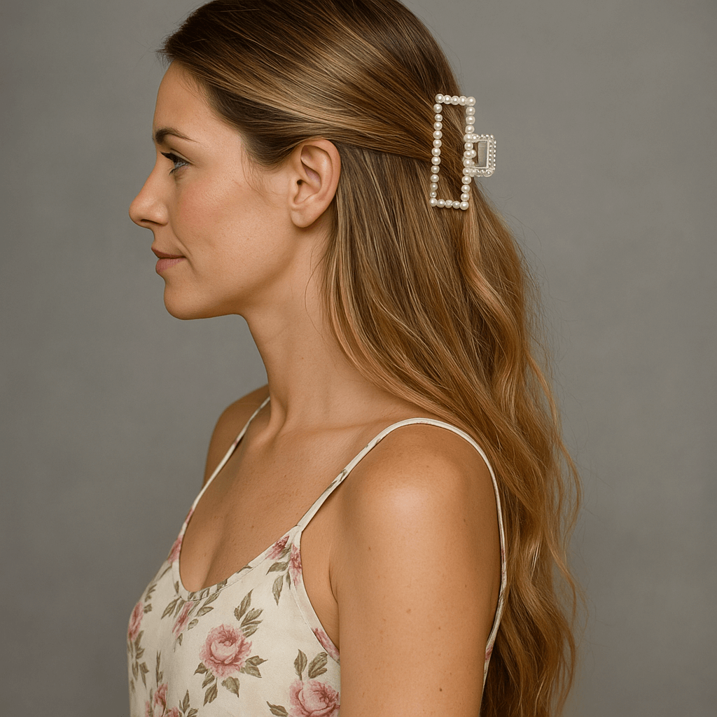 Oplev sæsonens mest eftertragtede håraccessory. Tangled Claw – Pearl Edition kombinerer klassisk perleskønhed med moderne design. Resultatet? En stilren claw clip, der løfter ethvert look – uanset om du går efter en ubesværet hverdagsstil eller festklar elegance.